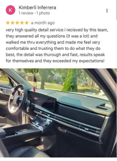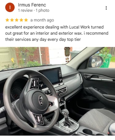 “Booked Terwillegar Mobile Auto Detailing and honestly didn’t expect the car to come out this clean. They showed up on time, worked fast, and somehow got rid of stains I’d been ignoring for months. My SUV literally looks newer than when I bought it. Super professional, no upselling, just solid work. Definitely worth it.”